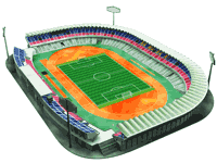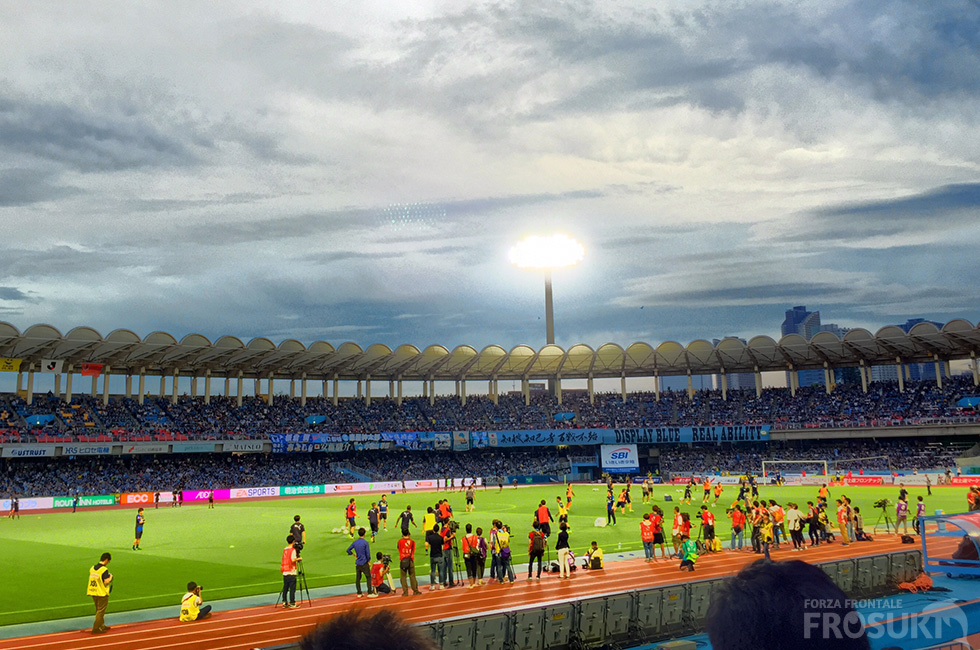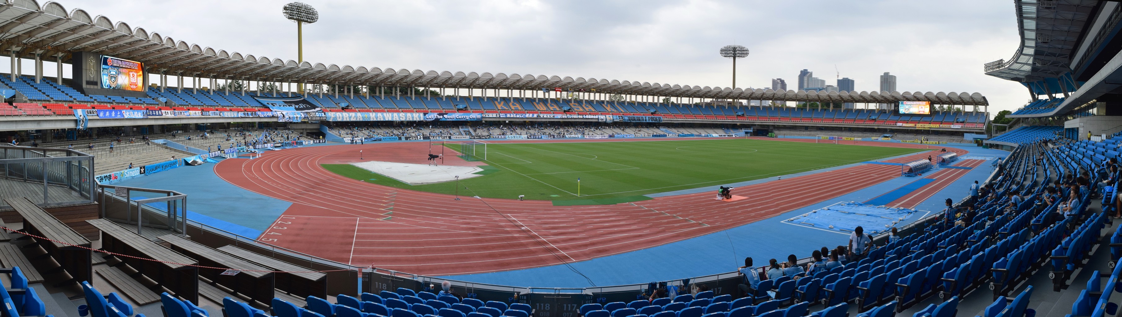 Todoroki Stadium is a very cozy, fan-friendly facility. Though it is an older stadium, and has a running track, Todoroki has a tremendous amount of character. From the beveled roof that rings two thirds of the ground to the deep banks of seats in both end zones, it is a very well-designed venue for a football match, despite the fact that it is not football-only. The capacity, at 26,000, is also appropriate to the crowds that typically frequent the stadium, though it is a bit too small to host championship matches. Todoroki has been a fixture of the J.League since its founding. As the original home of Verdy Kawasaki, it played host to a number of championship matches as well. Although Verdy pulled up stakes in 1999 and moved to Tokyo, Todoroki remains the home stadium for Kawasaki Frontale, which has been vying for a title in recent years. Access is fairly convenient. Although the train lines that serve it are not major lines, there are three stations within walking distance. |