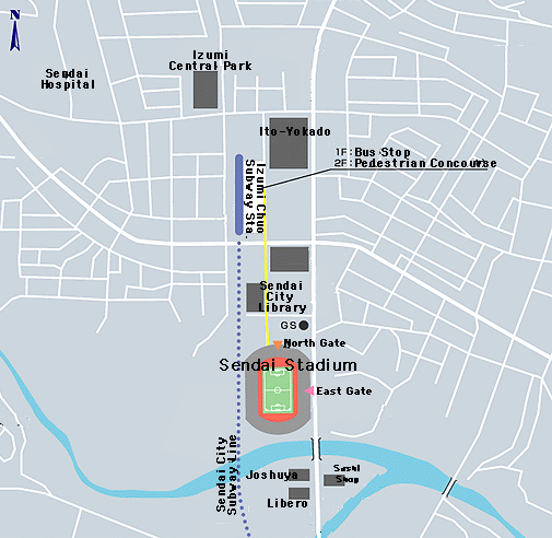 Although it may not be able to match the capacity of nearby Miyagi Stadium, which served as one of the venues for World Cup 2002, soccer fans in northern Japan will certainly tell you that Sendai Stadium is the winner in terms of the highlight sports venues of their city. Vegalta Sendai calls Sendai Stadium home, and uses Miyagi Stadium only for a handful of matches which require a more massive capacity than the 19,700 that Sendai Stadium can accommodate. The stadium is a very beautiful venue, built exclusively for soccer matches, and with stands build very close to the pitch for a cozy and intimate atmosphere. Vegalta Sendai is the first team from the Tohoku region (northern Japan) to join the J.League's top-flight division, and the team has always drawn huge crowds. Certainly the team's success is an important part of that performance, but one should not dismiss the impact of having such a beautiful stadium in close proximity to the city. The stadium is just a four-minute walk from a main subway station, providing very quick and convenient access. No doubt the convenience and beauty of the city and the stadium were key considerations for the national team of Italy, which based its training camp at Sendai Stadium during the 2002 World Cup. |
