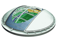 Building Structure: Three-storey structure with two-level basement. Opening-and-closing roof system driven by wire traction system |